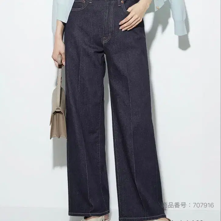 플라스테 하이라이즈 와이드 청바지 네이비 M