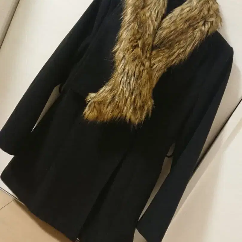 블랙 퍼 후드 코트 립 서비스 세실 맥비 INGNI