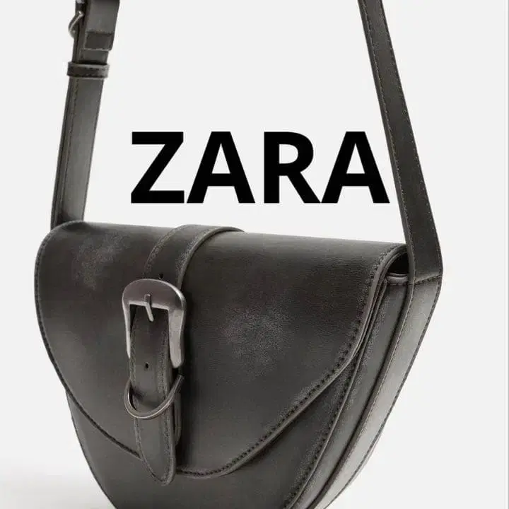 자라 빈티지 가공 가죽 숄더백 블랙 새들백