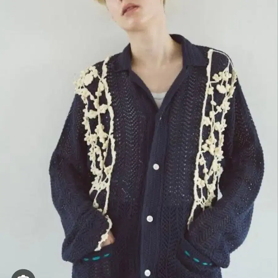 S 사이즈 2회 착용, 새상품급입니다. hand knit flower line Cuba shirt cardigan 핸드 니트 플라워 라인 쿠바 셔츠 가디건 빈티지 셔츠의 대명사 '쿠바 셔츠'를 샘플링하여, 시스루 편직과 손뜨개질 기법을 엮어 제작한 [ 니트 쿠바 가디건 ] 입니다. 바디 부분에는 셰브런 기계 시스루 편직을, 플라워 텍스타일에는 장인이 하나하나 손뜨개질로 완성하여, 각각 다른 기법으로 편직함으로써 니트 자체에 입체감과 깊이를 더했습니다. 또한, 소매에도 플라워 텍스타일을 짜 넣고, 포켓 입구에는 손뜨개질 스티치를 반대 색상으로 편직하여, 한 장만으로도 충분히 볼거리가 있는 니트 셔츠로 완성했습니다. 차별화를 꾀하면서도, 빈티지 같은 핸드크래프트 느낌을 즐기실 수 있는 스페셜 피스로 완성되었습니다. 어깨 너비/가슴 너비/소매 길이/기장 어깨 너비 - 46cm 가슴 너비 - 48cm 기장 - 62cm