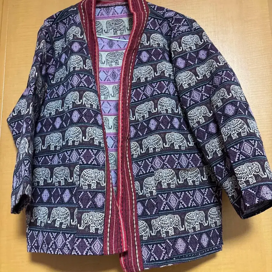 코끼리 자수 보라 빨간색 캐주얼 겉옷