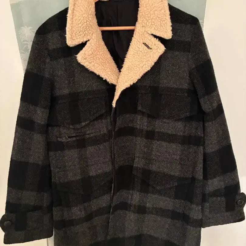 08AW 정가 110,250 폴란드 시기 옷깃 보아 울 체크 코트 3