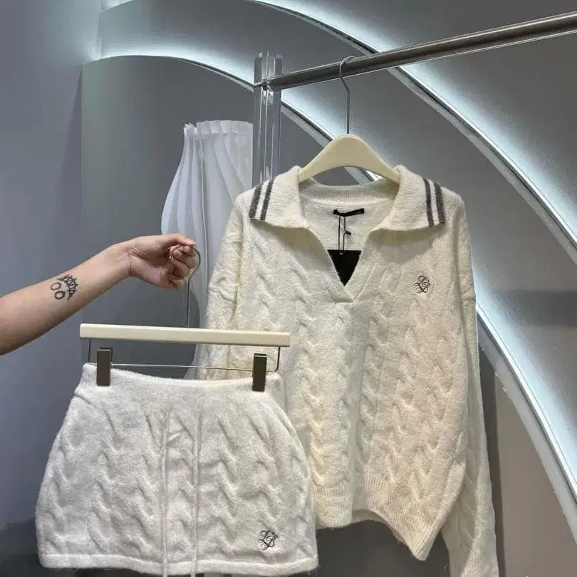 화이트 케이블 니트 세트