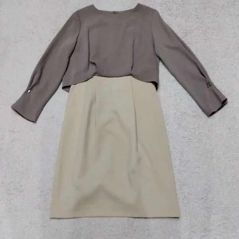 베이지색 긴팔 무릎 기장 도킹 원피스