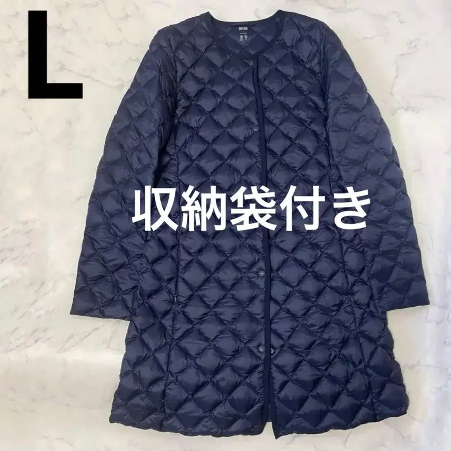 유니클로 울트라 라이트 다운 코트 노카라 코트 네이비 L 수납 봉투 포함