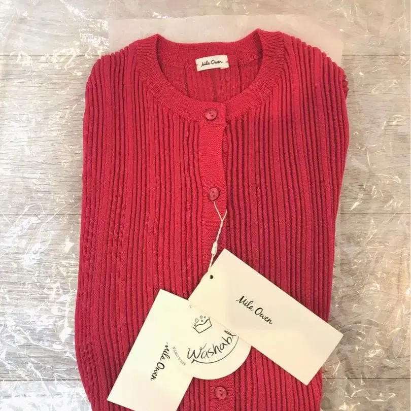 Mira owen 빨간색 리브 편직 긴팔 스웨터