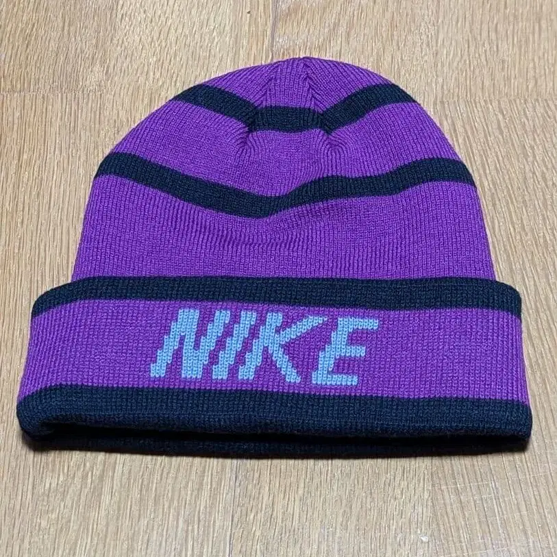 Y2K NIKE 보라색 스트라이프 니트 모자 프리 사이즈