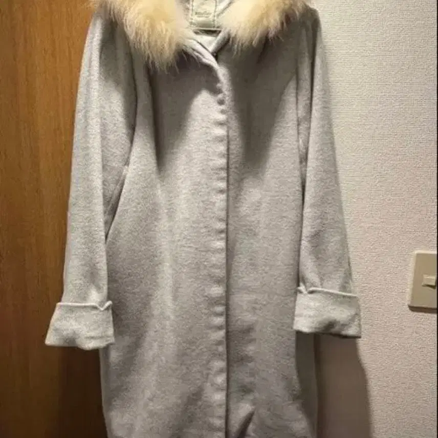 새상품급 그레이 퍼(fur) 부착 롱 코트 체스터 코트 여성용