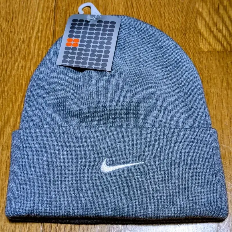 자동 번역되었어요. 원문보기Nike의 그레이 니트 모자, 심플하고 스타일리시한 디자인.