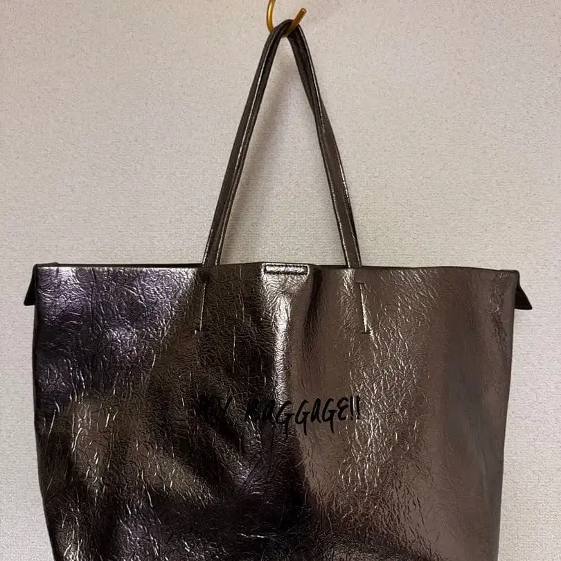 PECHINCHAR 주름 가공 메탈릭 실버 호일 토트백