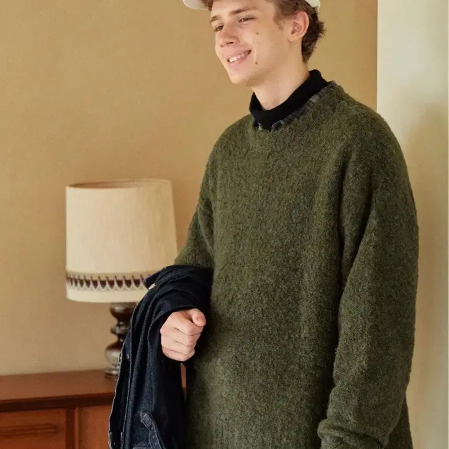 울 혼방 부클 얀 오버 사이즈 크루넥 풀오버 니트