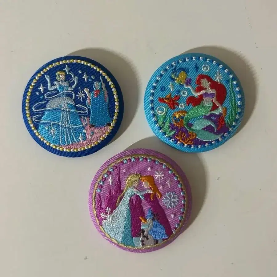 디즈니 프린세스 자수 핀 배지 3개 세트