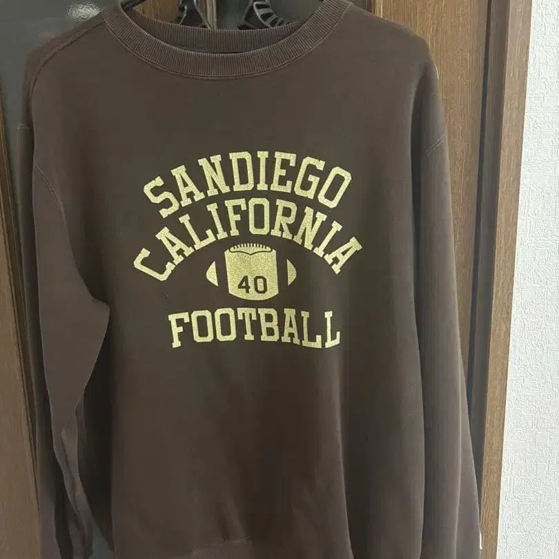 남성용 챔피온 속기모 로고 프린트 맨투맨 브라운 M 사이즈