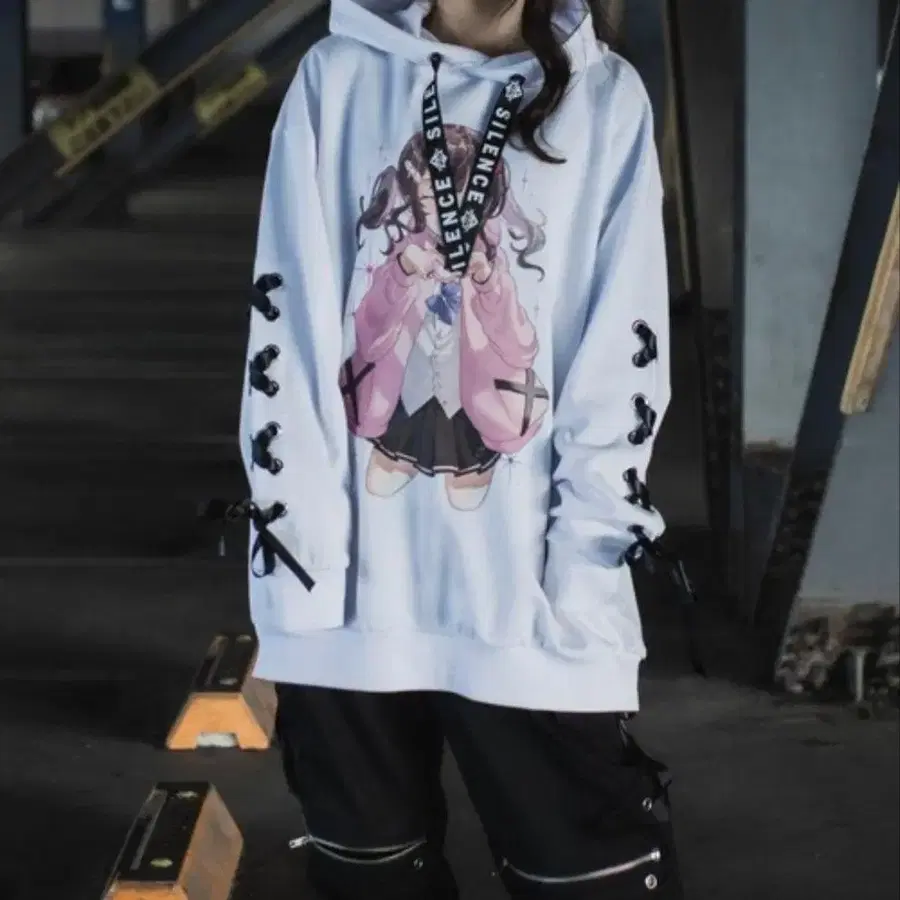 JOHN'S CLOSET 사이드 레이스업 딸기 & 아오이 프린트 후드티