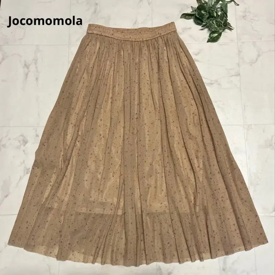새상품급 호코모모라 플리츠 올 패턴 롱 스커트 사이즈 40 베이지 도트