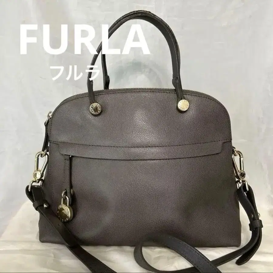 정품 FURLA 그레이 가죽 핸드백 숄더 스트랩 포함