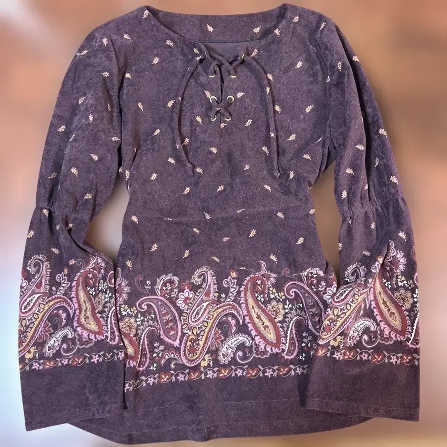 y2k 그런지 모리걸 퍼플 페이즐리 튜닉 두꺼운 원단