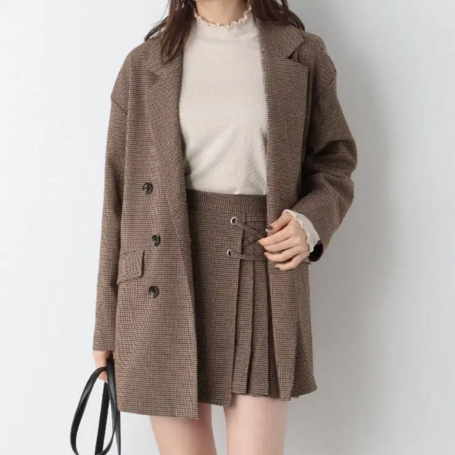 Heather 브라운 체크 스커트 셋업