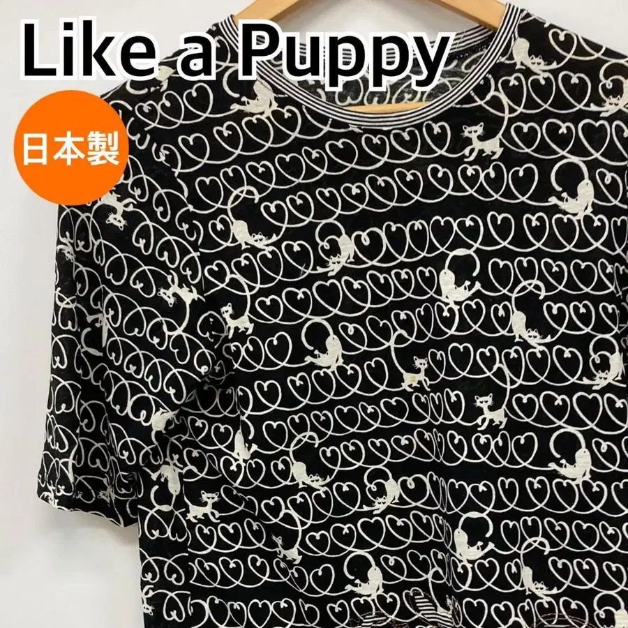 Like a puppy 상의 T셔츠 캣 하트 무늬 [ CT1901 ]