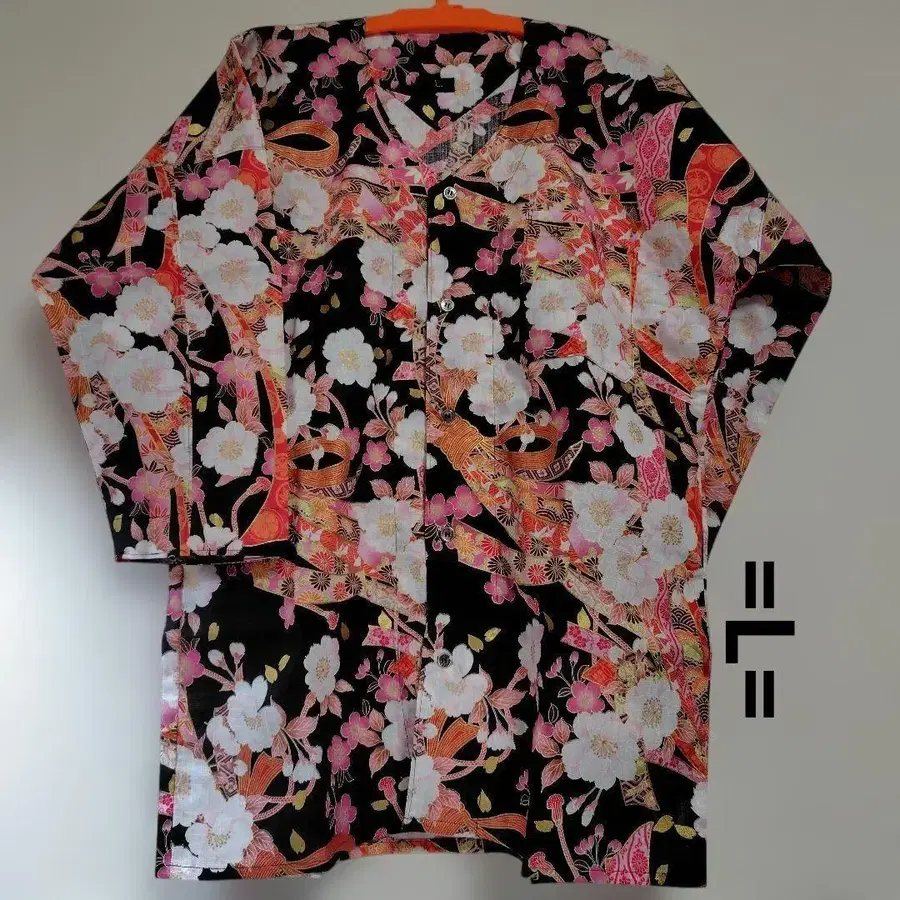 다보셔츠 - 블랙 길상 묶음 노시 벚꽃 - L