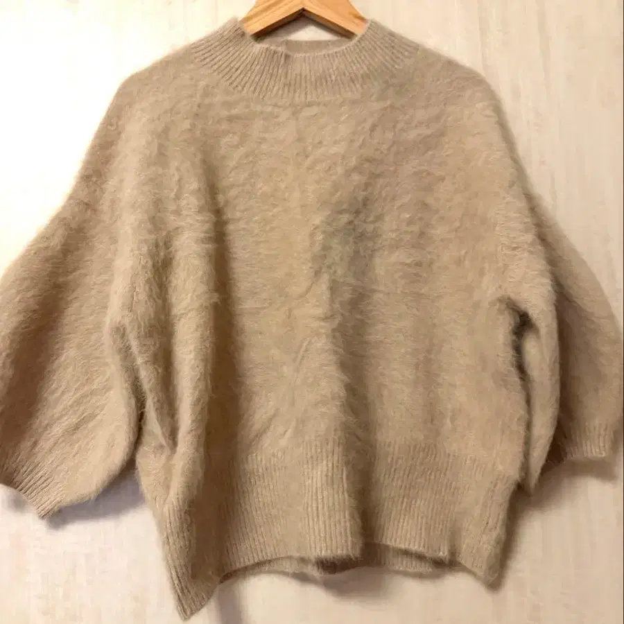 UNITED ARROWS 폭스 캐시미어 하프 슬리브 니트 베이지