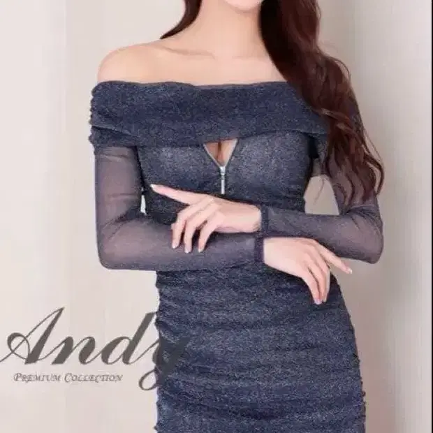 GLAMOROUS 네이비 오프숄더 타이트 드레스