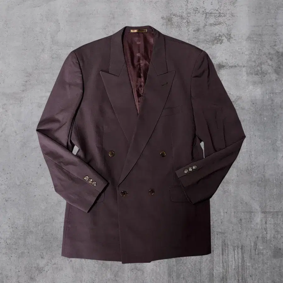 버건디 색상의 더블 브레스트 테일러드 자켓입니다.