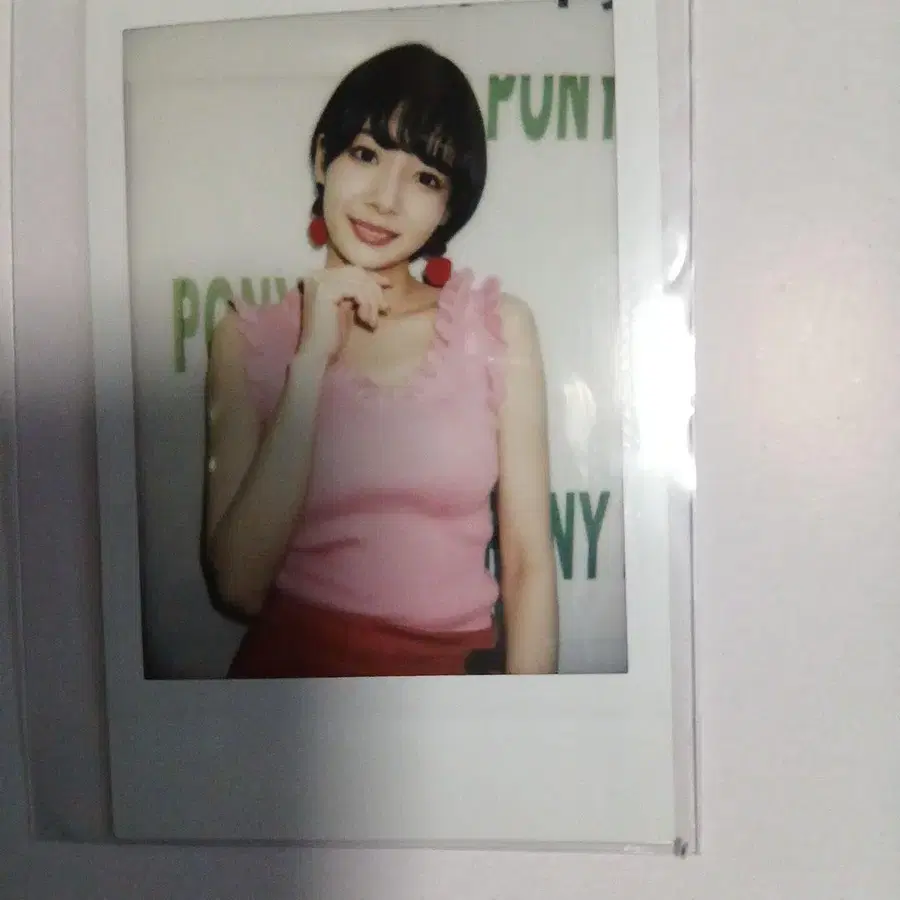 오카다 사야카 폴라로이드 프릴 달린 핑크 상의