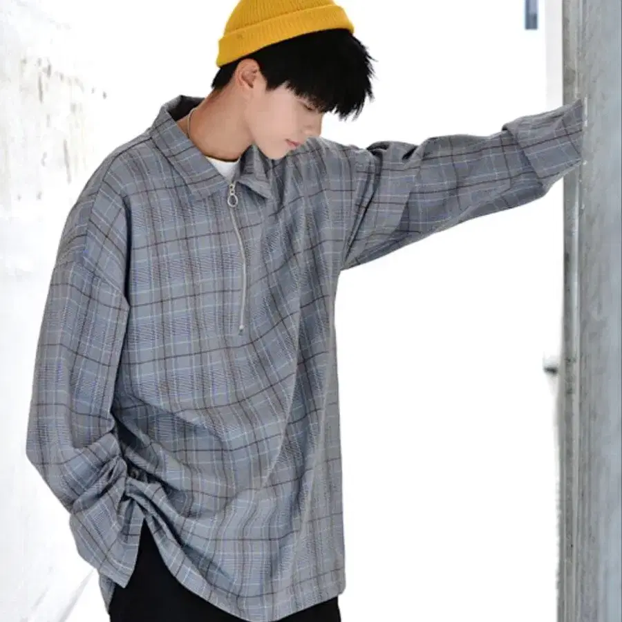 Reversible 그레이 계열 체크 셔츠 하프 지퍼