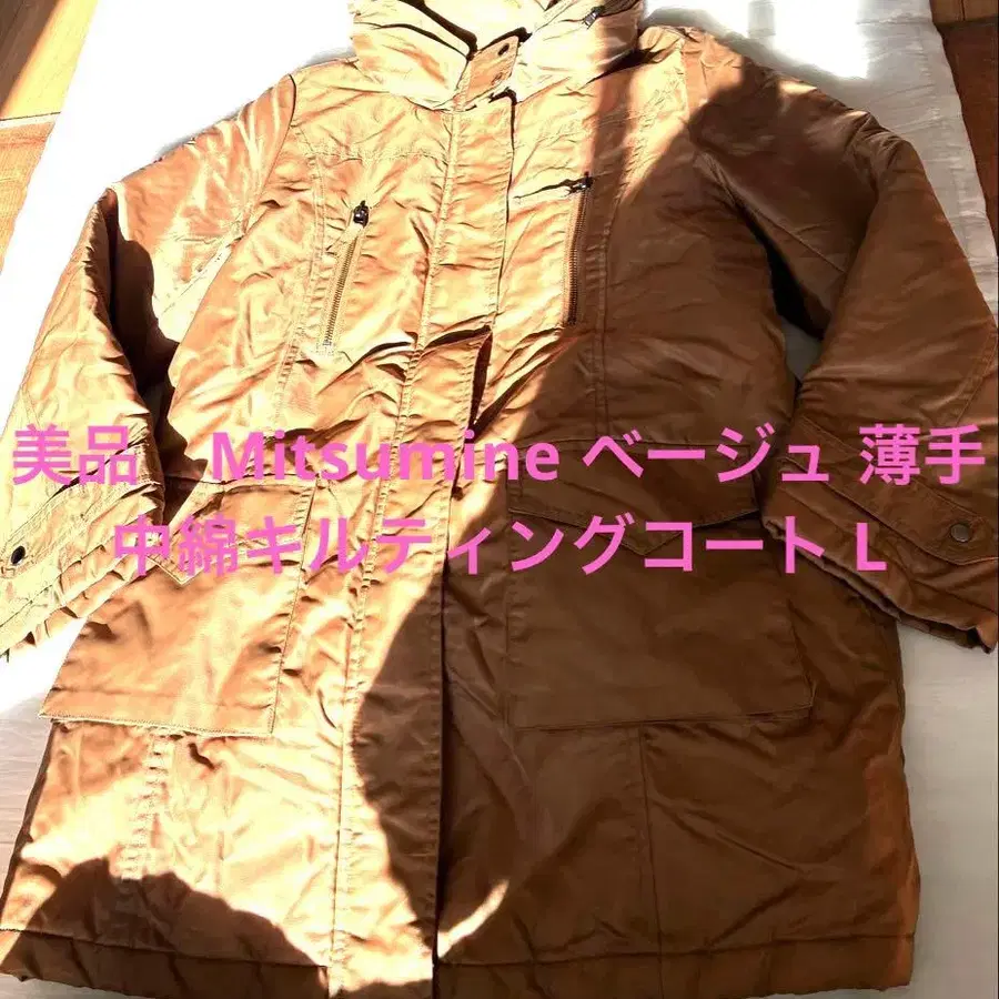 새상품급 Mitsumine 베이지 얇은 소재 충전솜 퀼팅 코트 L