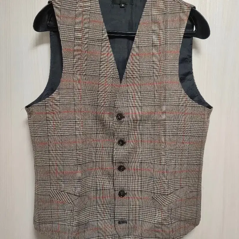 체크 포멀 베스트 4개 버튼 브라운 베이지 브라이덜 베스트