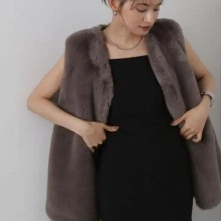 내추럴 뷰티 베이직 인조 모피 베스트 그레이지