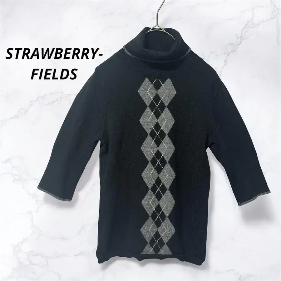 [스트로베리 필드] 터틀 니트 스웨터 아가일 무늬 블랙 7부 소매