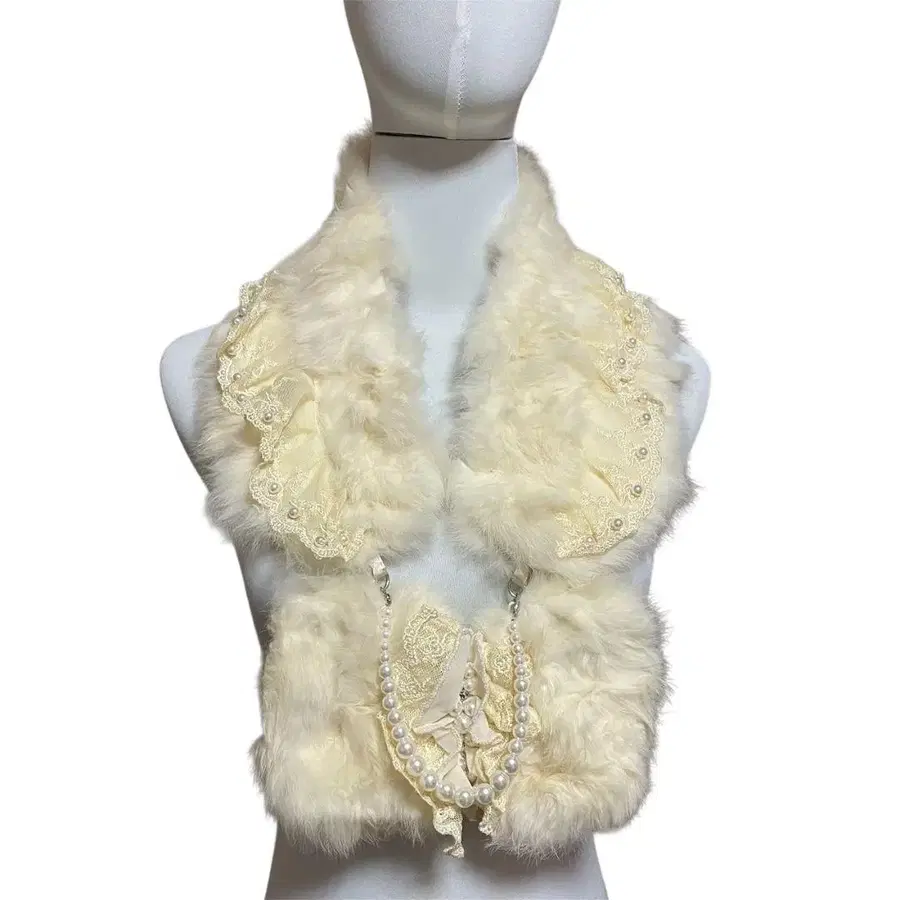axes femme 리본 퍼 아이보리 레이스 머플러