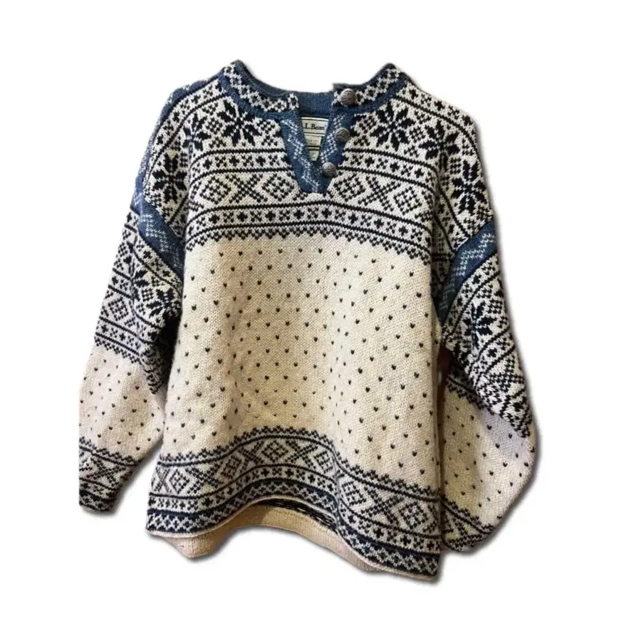 자동 번역되었어요. 원문보기노르딕 무늬의 아이보리와 네이비 색상 스웨터, M 사이즈.
