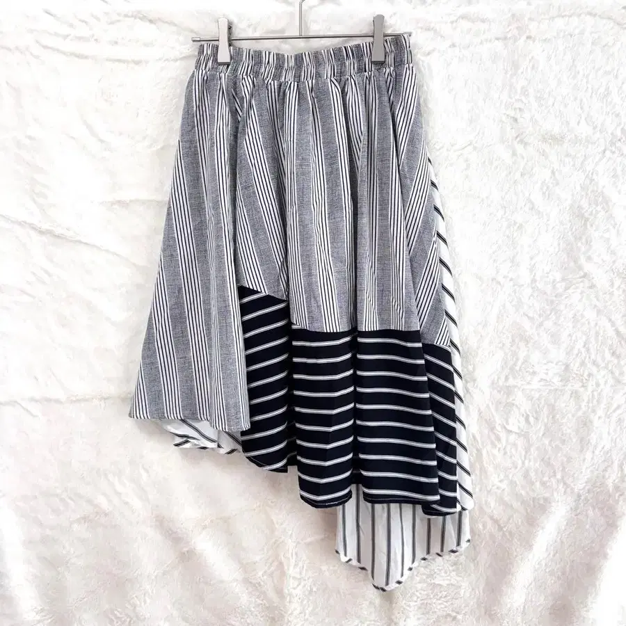 clear 클리어 비대칭 스커트 스트라이프 보더 허리밴딩