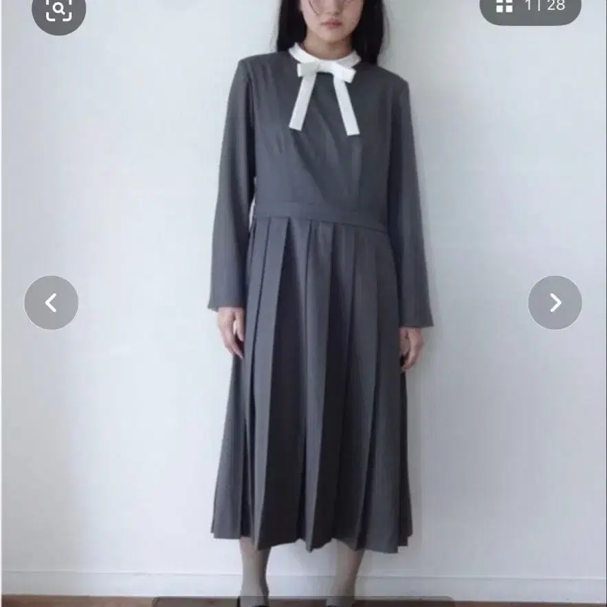 그레이 리본 포함 긴팔 원피스 L 사이즈