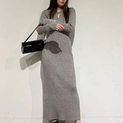 하나만으로도 멋스러운 원피스이므로, 펌프스나 부츠, 로퍼 등 신발을 바꿔가며 스타일링을 즐길 수 있습니다.