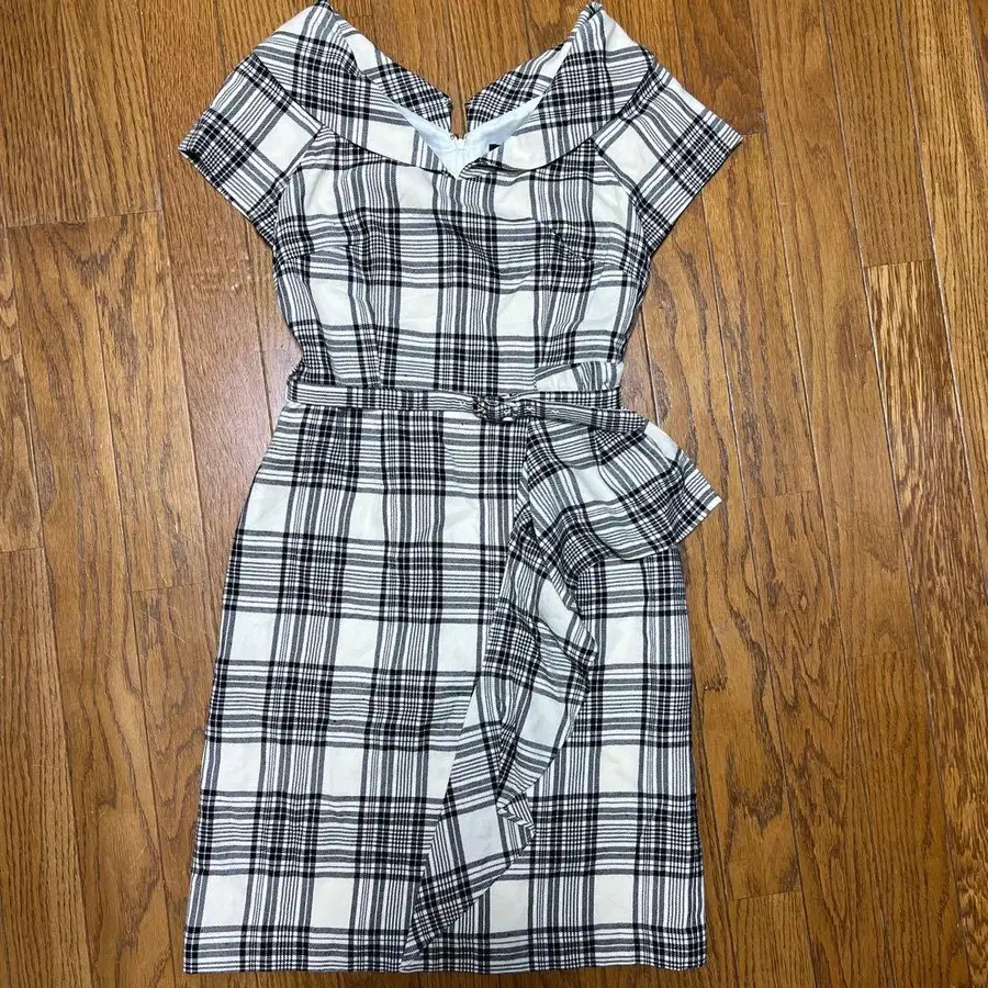 레어 인기 JUSGLITTY 체크 무늬 무릎 기장 원피스 반팔