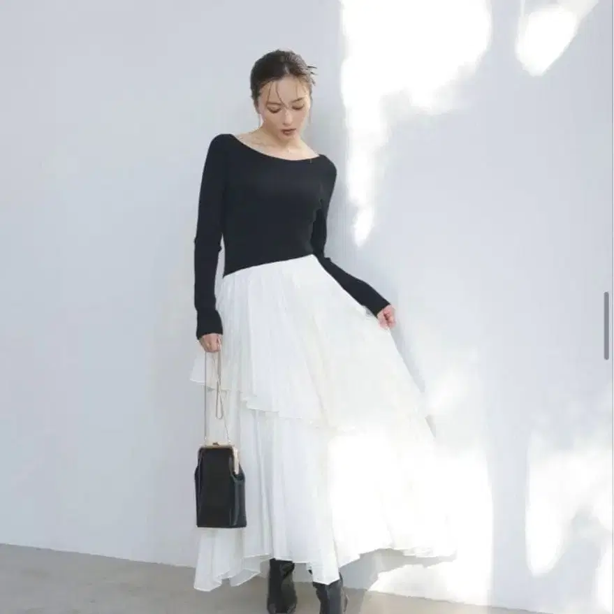 anuans 보트넥 밑단 도킹 니트 원피스 믹스