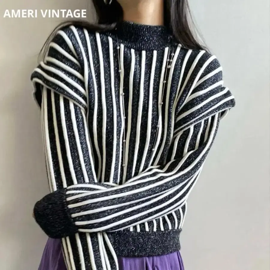AMERI SWELL STRIPE KNIT 라메 니트 스트라이프 블랙