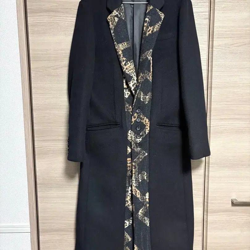 NO ID. 레오파드 무늬 블랙 체스터 코트