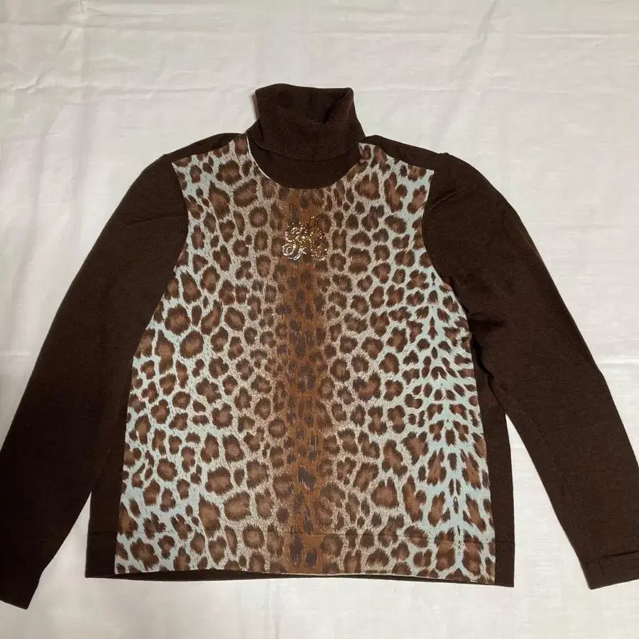 이타리야 브라운 레오파드 무늬 터틀넥 긴팔