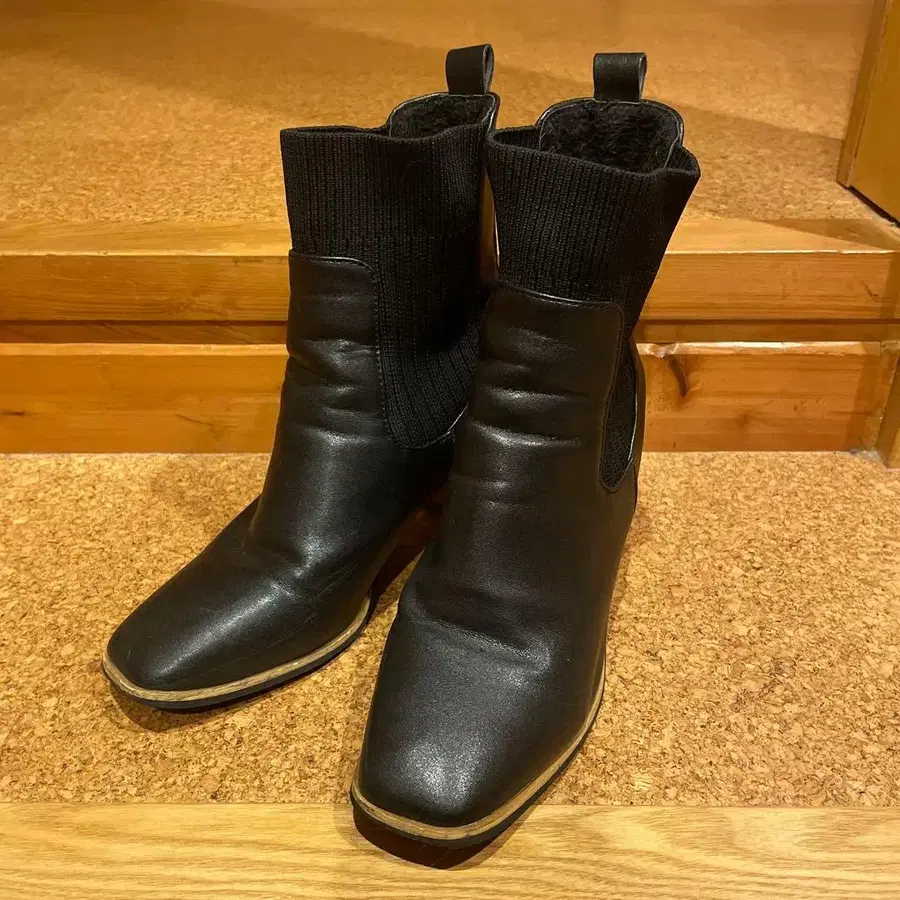 사이드 고어 부츠 블랙 합성 피혁 약 8cm 힐