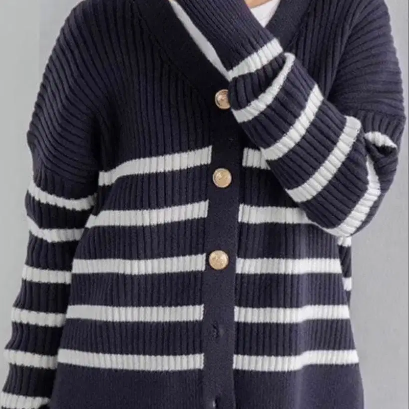 네이비/화이트 스트라이프 가디건