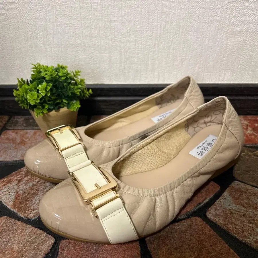 [ 히미코 ] 플랫 펌프스 ( 23 ) 가죽 베이지 스퀘어 버클
