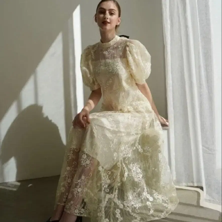 살랑이며 퍼지는 A라인 밑단과 소매의 퍼프 실루엣이 특징입니다.