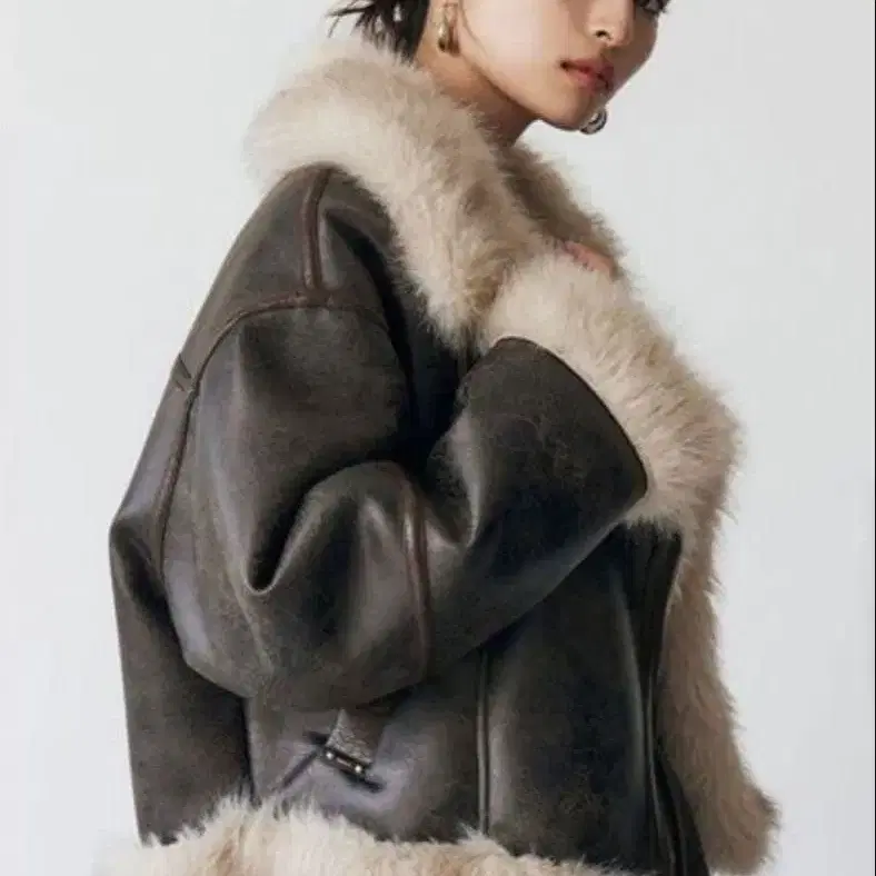 언이븐 숏 페이크 무스탕 자켓