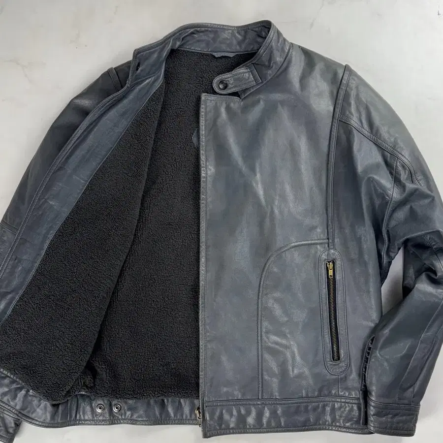 레어 싱글 라이더 소가죽 보아 안감 스탠드 카라 그레이 y2k