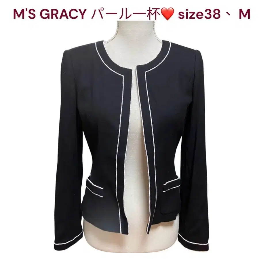 새상품급 엠즈 그레이시 펄 가득 노카라 자켓 블랙 38, M